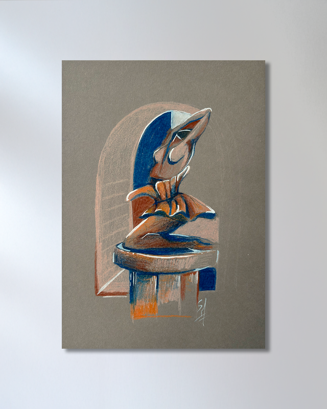 Les œuvres ne cherchent pas la perfection. On peut y voir des crayonnés, des traces, des taches ou des aspérités. Ces marques font partie intégrante des originaux, témoignent du processus de création et participent pleinement à leur beauté et à leur singularité.