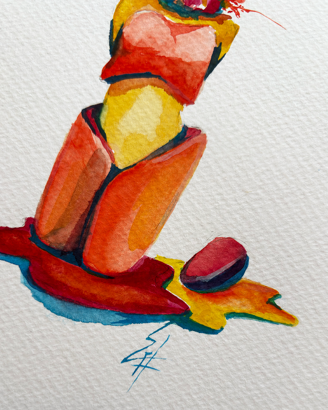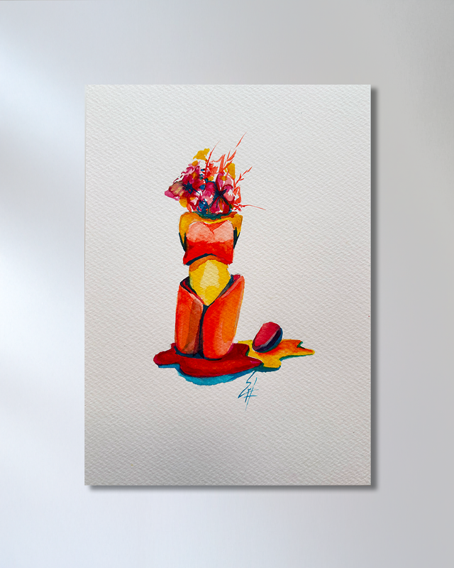 Les œuvres ne cherchent pas la perfection. On peut y voir des crayonnés, des traces, des taches ou des aspérités. Ces marques font partie intégrante des originaux, témoignent du processus de création et participent pleinement à leur beauté et à leur singularité.
