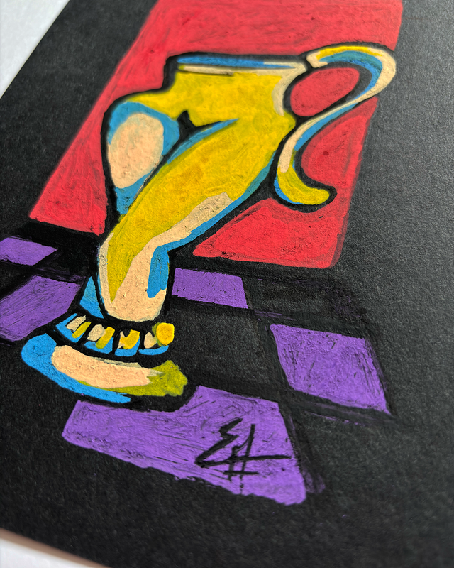 Les œuvres ne cherchent pas la perfection. On peut y voir des crayonnés, des traces, des taches ou des aspérités. Ces marques font partie intégrante des originaux, témoignent du processus de création et participent pleinement à leur beauté et à leur singularité.