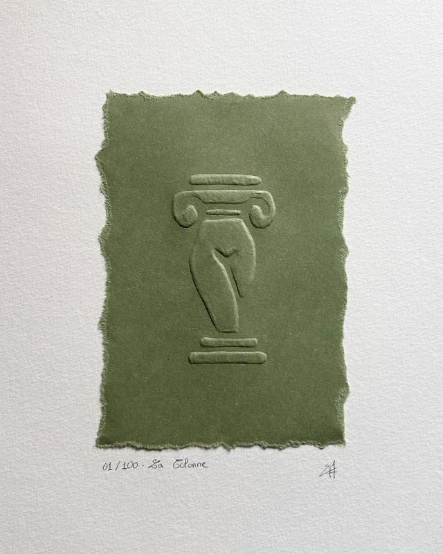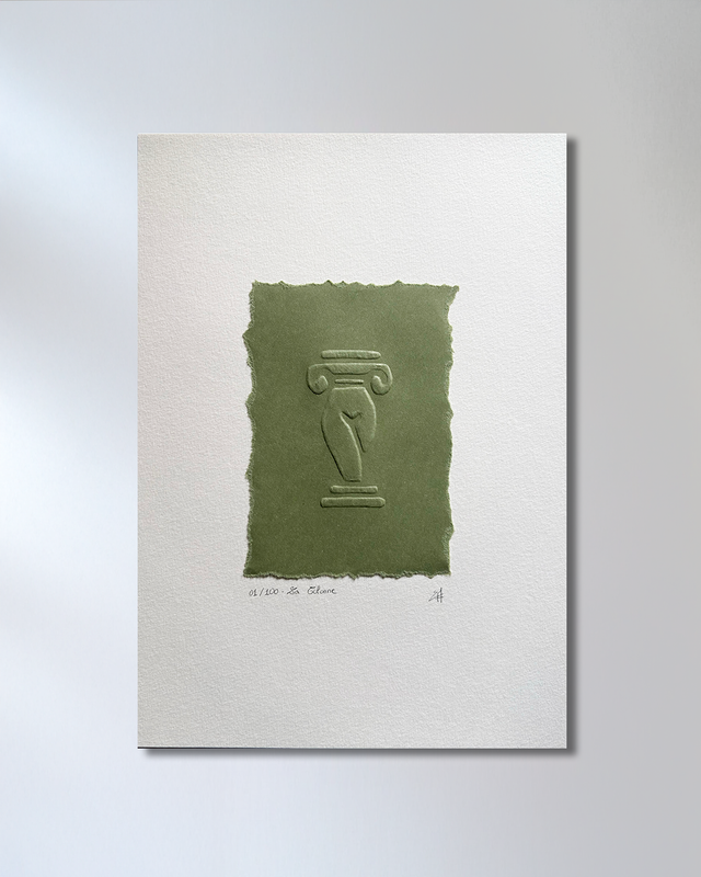 Tirage original embossé à la main, en édition limitée à 100 exemplaires, signé et accompagné d’un certificat d’authenticité.