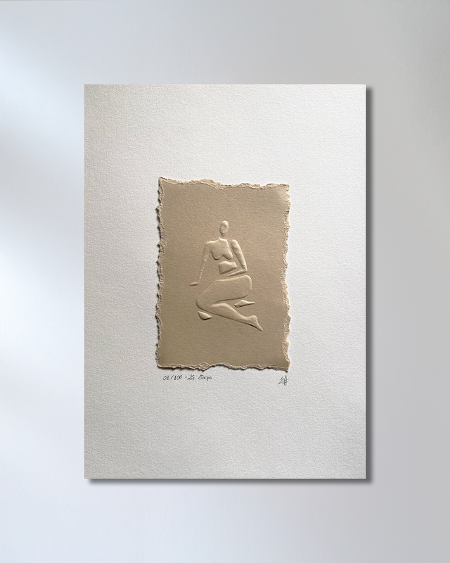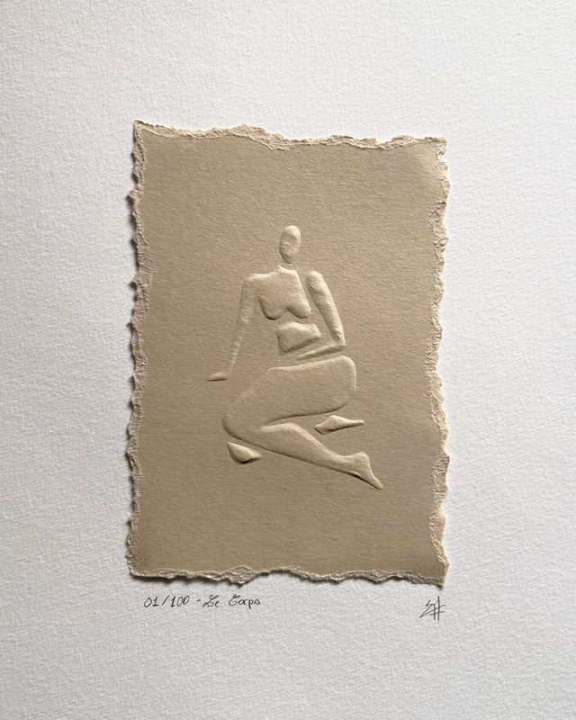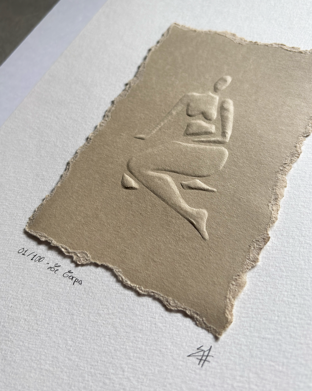 Tirage original embossé à la main, en édition limitée à 100 exemplaires, signé et accompagné d’un certificat d’authenticité.