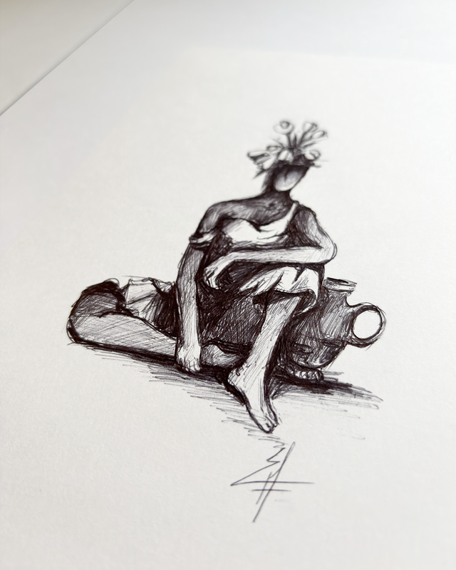 Les œuvres ne cherchent pas la perfection. On peut y voir des crayonnés, des traces, des taches ou des aspérités. Ces marques font partie intégrante des originaux, témoignent du processus de création et participent pleinement à leur beauté et à leur singularité.